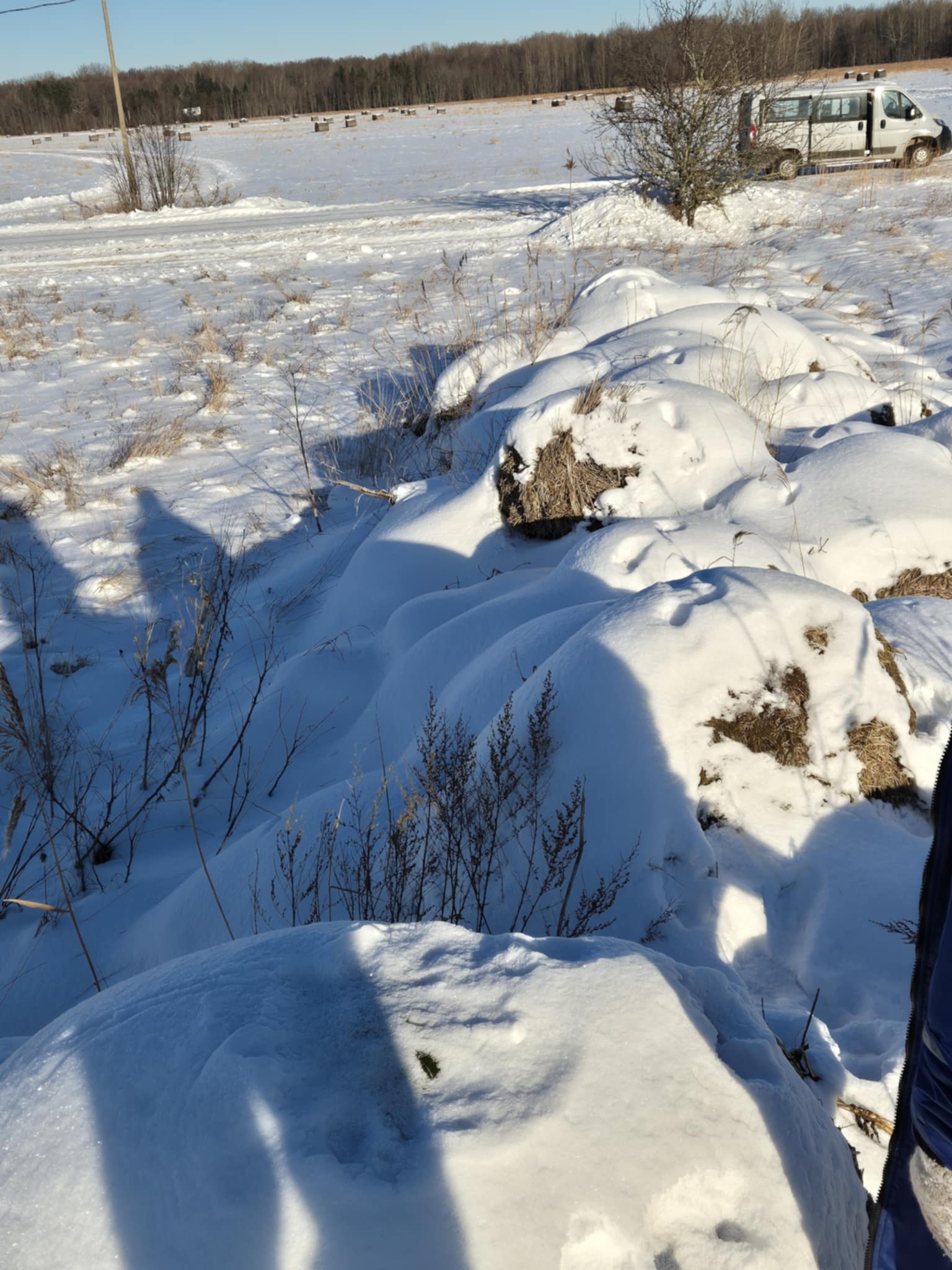 Hay bales are typically left in fields during winter and fed directly to livestock, and stones cleared from fields are piled into small heaps. In an otherwise flat environment, these features form small artificial elevations, which lynx frequently use as observation points. During our lynx watching and tracking tours in Estonia, this is often exactly where we locate them.